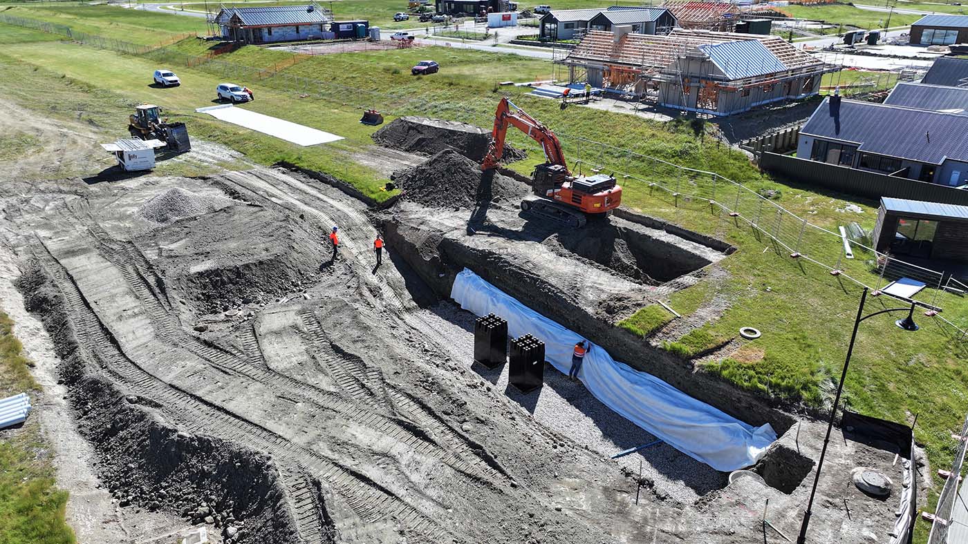 Pembroke Terrace is a highly sought after residential subdivision in Wanaka, offering 360-degree mountain views for approximately 140 new sections. With four stages already near completion, stage six is about to be developed. A soakage pit for stage six was originally designed using a traditional plate system, but with the release of the new AquaFort system, Cirtex worked in conjunction with the contractor and the engineer to upgrade the design and speed up the installation programme.