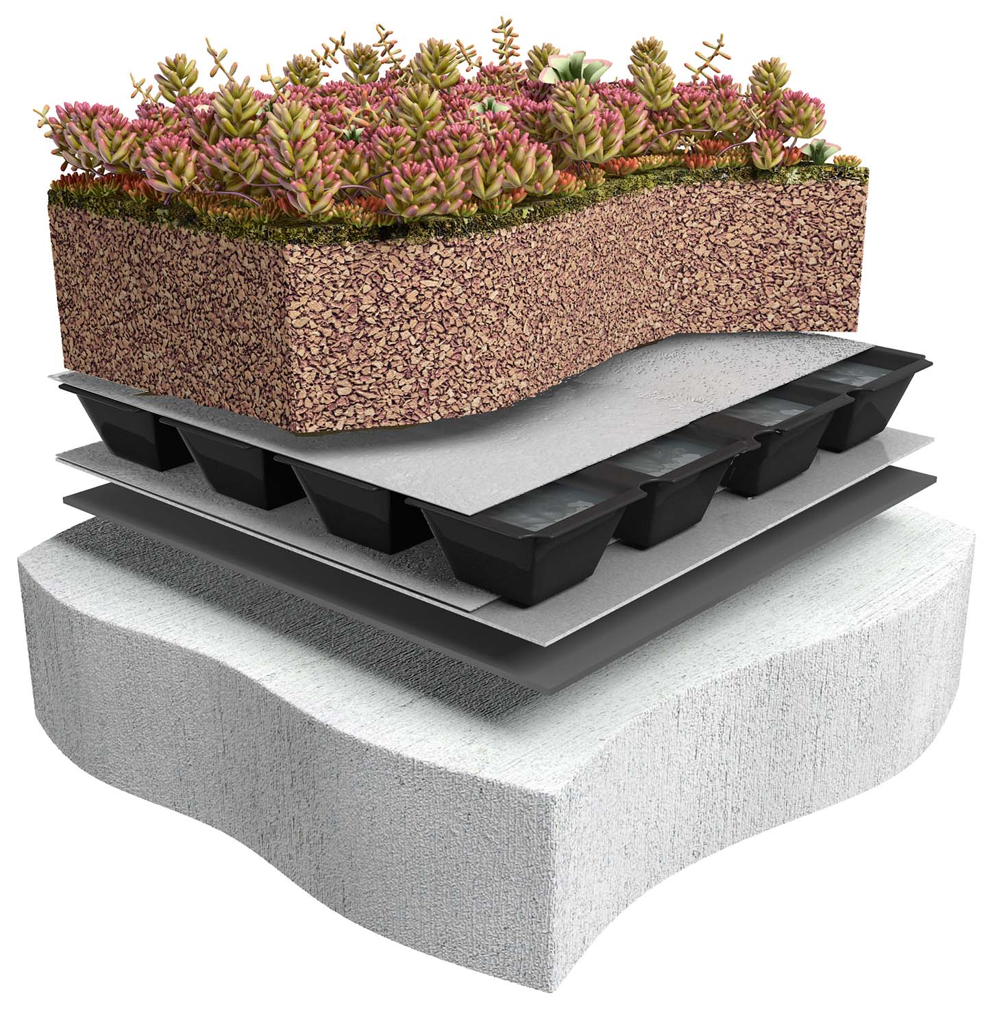 It’s suitable for extensive green roofs, brown roofs, green bridges, green tunnels, and SuDS applications where drainage and attenuation are required.