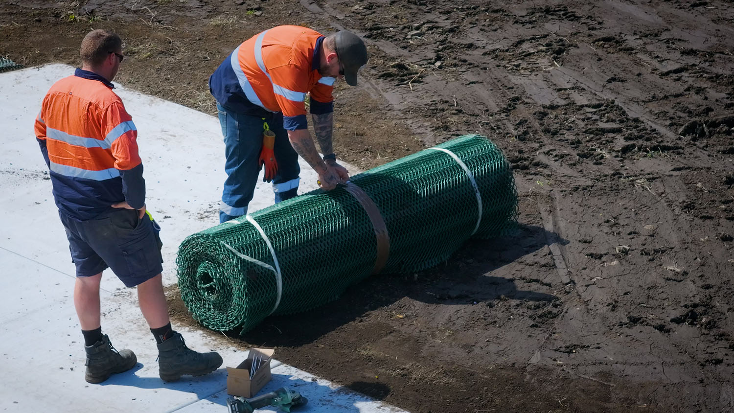 SureFlex is a plastic mesh, manufactured from HDPE and EVA, so it can easily be cut with a saw or sharp knife. The number of cuts should be limited to ensure continuity of the product for optimum performance.